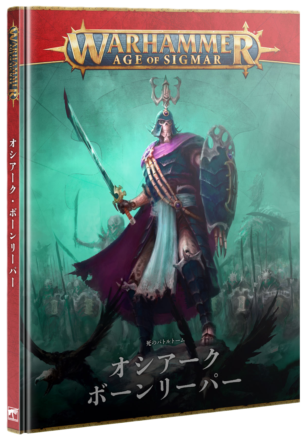不死の精鋭兵士たちを召集し、ナガッシュの領域に住まう者たちから骨税を徴収するには、最も優れた戦術が必要だ。『バトルトーム:オシアーク・ボーンリーパー』には、アップデートされたウォースクロールとスピアヘッド、『栄光への道』のルールが記載されているため、この軍勢には欠かせないアイテムである! さらに、背景資料や美しいアートワークも収録されているので、ナガッシュ腹心のオシアーク・ボーンリーパーや〈定命の諸領域〉に存在するかれらの領地についても学べるぞ。